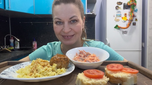 МУКБАНГ МАКАРОНЫ С ТЕФТЕЛЬКОЙ/САЛАТ МОРКОВКА С ЧЕСНОКОМ/БУТЕРБРОДЫ/MUKBANG ЕДА ОБЖОР