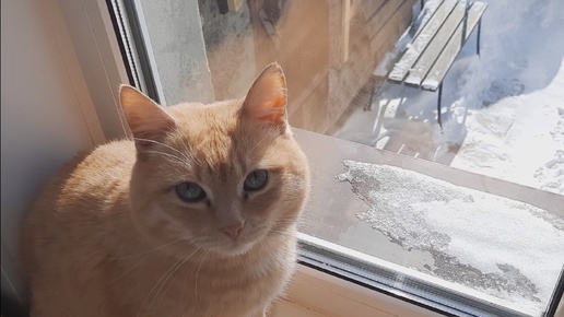 Два эпизода поздней весны 2026 - сражение со снежным карнизом и что насторожило нашего кота