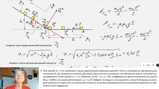 Олим.зад.на опр.Vт в зад.точке,h на котор.подн.2т по накл.пл-ти,cosmax угла откл.пров.от верт.после соуд.2 тел.непод.
