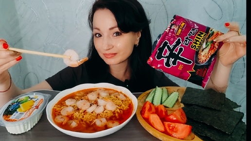 Лапша Том Ям с Креветками🍜🦐🔥#mukbang#kristinakiss#food#
