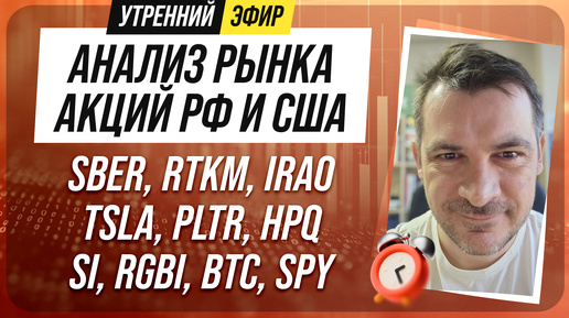 Анализ рынка акций РФ и США/ SBER, RTKM, IRAO, TSLA, PLTR, HPQ/ SI, RGBI, BTC, SPY