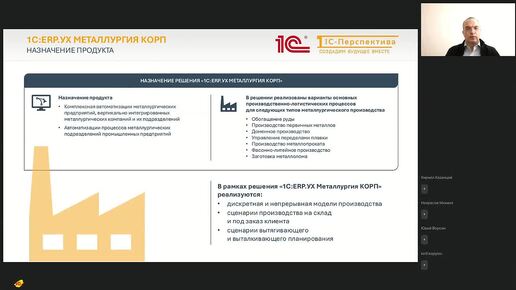 Вебинар "1С:ERP.УХ Металлургия КОРП – новый продукт для комплексного управления крупными металлургическими предприятиями и холдингами"
