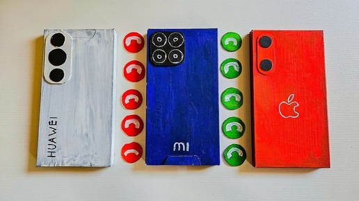 Cardboard Xiaomi Redmi 13 & iPhone RED 17 & HUAWEI Pura 70 Ultra incoming call