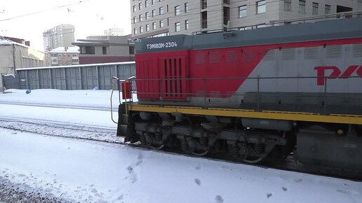 Маневровый тепловоз ТЭМ18ДМ-2304 (ТЧЭ-6) с техн. поездом № 5ХХХ (поезд № 068Х/067х Москва — Симферополь) подаётся под посадку.