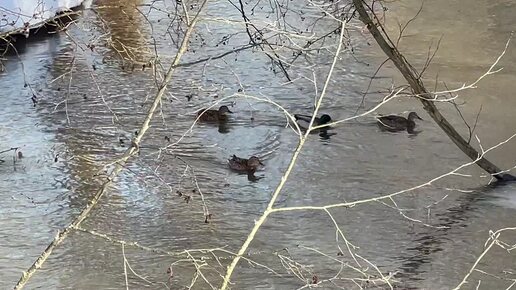 УТКИ КРЯКВЫ НА РЕКЕ ТАЛИЦА В МАРТЕ