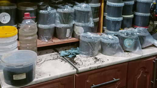 Заполняю 1-литровые ведёрки перегноем для томатов 13.03.-14.03.26г.