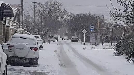 Анапа в снегу..На улицах сел...сугробы...Снежинки танцуют...