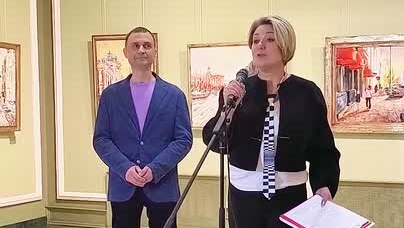 Директор ИОХМ Наталья Сысоева на открытии выставки Никиты Шелтунова в Галерее сибирского искусства (27.02.26, Иркутск)