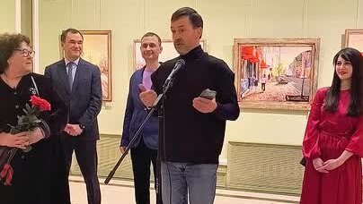 Директор Фонда развития русской культуры Максим Хвостишков на открытии выставки Никиты Шелтунова в Галерее сибирского искусства (27.02.26)