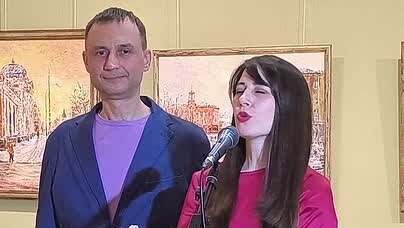 Галина, Людмила и Никита Шелтуновы на открытии выставки «Дыхание неба» Никиты Шелтунова в Галерее сибирского искусства (27.02.26, Иркутск)