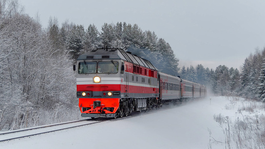 ТЭП70-0432 с пассажирским поездом №0305Я Усинск-Сыктывкар и приветливой бригадой!