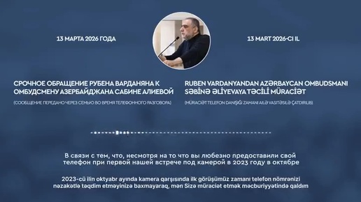Рубену Варданяну не позволили обратиться к омбудсмену Азербайджана — семья представила фрагмент из телефонного разговора