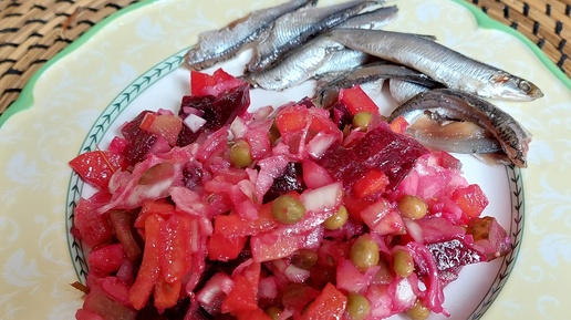 Нарядный яркий винегрет с хамсой. Самый простой овощной салат.