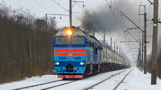 Ненадолго выбравшийся с Питерского узла 2ТЭ116-1545 с синими контейнерами