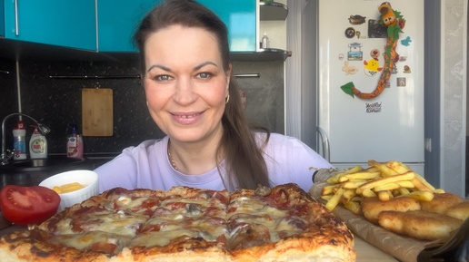 МУКБАНГ ПИЦЦА/КУРИНЫЕ НАГГЕТСЫ/КАРТОШКА ФРИ/MUKBANG ЕДА ОБЖОР