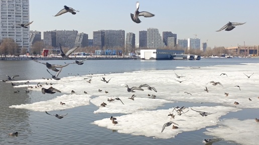 Весна на Москва-реке природа пробуждается после зимней спячки птицы радуются солнечному весеннему дню.