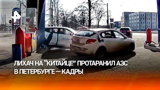 "Дрифт" на "китайце" закончился разбитым капотом: лихач протаранил АЗС в Петербурге
