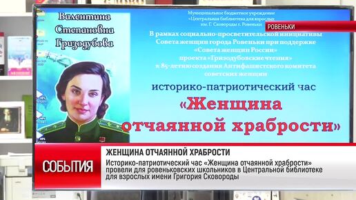 ТК "Родной". Историко-патриотический час «Женщина отчаянной храбрости» провели для ровеньковских школьников