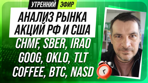 Анализ рынка акций РФ и США/ CHMF, SBER, IRAO, GOOG, OKLO, TLT/ COFFEE, BTC, NASD