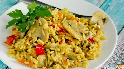 Идеальный рецепт "почти плова" для вегетарианцев. Рис с грибами, перцем и сельдереем