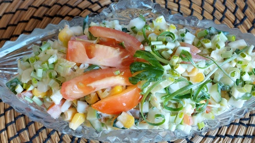 Салат с пекинской капустой, кукурузой, помидором. Просто салат на ужин.