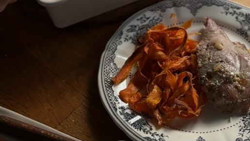 Запеченная голень индейки с чесноком под сливками и гарнир из батата