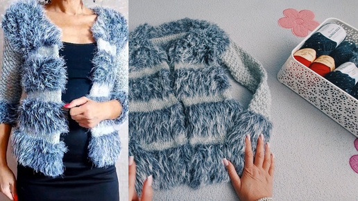 Вяжем из меха Жакет по моему БЕСПЛАТНОМУ Мастер классу