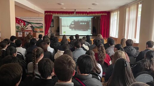 Показ фильма RT Documentary "Позывной "Буханка" и выставка "Люди Мира" состоялись в средней школе №1 им. Шинкуба в Сухуме