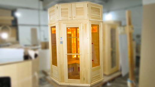 Видеообзор угловой кедровой инфракрасной 2местной сауны с антресолью и дополнительными опциями
