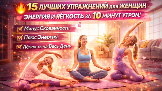 🔥 15 ЛУЧШИХ УПРАЖНЕНИЙ ДЛЯ ЖЕНЩИН — ЭНЕРГИЯ И ЛЁГКОСТЬ ЗА 10 МИНУТ УТРОМ