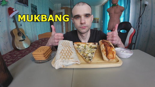 МУКБАНГ ШАУРМА С КОТЛЕТОЙ ИЗ МРАМОРНОЙ ГОВЯДИНЫ / ХОТ - ДОГ БАРБЕКЮ / ПИЦЦА / ПЕЧЕНЬЕ И СМЕТАНА С ВАРЕНЬЕМ / ЕДА / АСМР