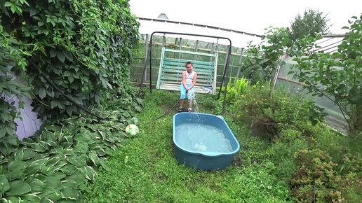 Ефим набирает воду в бассейн