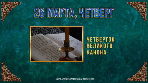 Четверток Великого канона. 26 марта 2026 г.