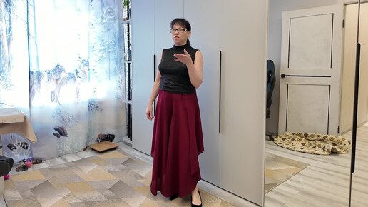 Показываю свои бордовые брюки солнце на двойной кокетке на себе.