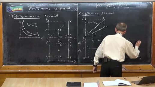 График изобарного процесса в координатах зависимости объема от температуры, давления от температуры и давления от объема.