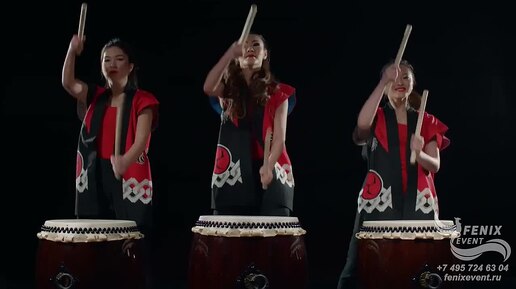 Заказать шоу японских барабанщиков в Москве - барабанщики на праздник в красных жилетах