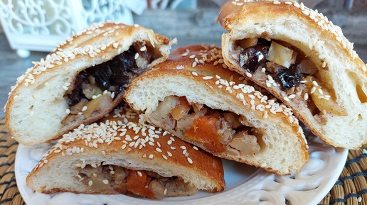 Тесто превосходное - на фруктовом йогурте. Начинка с курагой, черносливом и грецкими орехами
