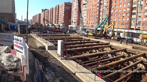 Ход строительства Автозаводской линии метро (продление) на ул. Максима Горького. Формирование стартового котлована || Март 2026