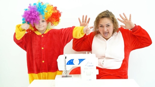 71 Мама шьет костюмы на швейной машинке а ребенок гладит утюгом