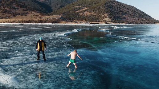 Посмотрите, как люди купаются в разломах тающего льда Байкала 😨