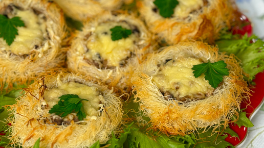 К Пасхальному столу помимо куличей можно приготовить гнёздышки с грибами в сметанном соусе