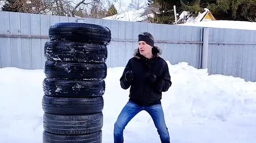 Мощные удары руками. Выбиваю подряд две и три шины.