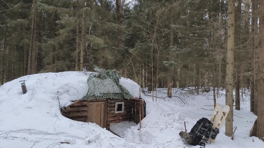 Встречаю весну в большой землянке. Навел уют в лесном доме.
