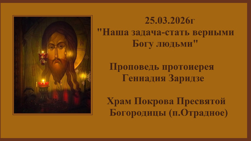 25.03.2026г"Наша задача-стать верными Богу людьми"Проповедь протоиерея Геннадия Заридзе.Храм Покрова Пресвятой Богородицы (п.Отрадное)