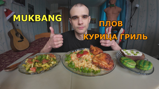 МУКБАНГ КУРИЦА ГРИЛЬ / ПЛОВ С КУРИЦЕЙ / САЛАТ ОВОЩНОЙ / БУТЕРБРОД С МАСЛОМ / ПЕЧЕНЬЕ - СЭНДВИЧ Choco Pie СО ВКУСОМ АРБУЗА / ЕДА / АСМР