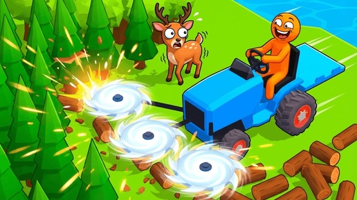 Игра про Заготовку Леса! Синий трактор с Циркулярной пилой!