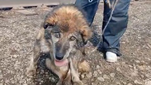 Старый пёс один на железных путях