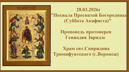 28.03.2026г"Похвала Пресвятой Богородицы (Суббота Акафиста)"Проповедь протоиерея Геннадия Заридзе. Храм свт.Спиридона Тримифунтского