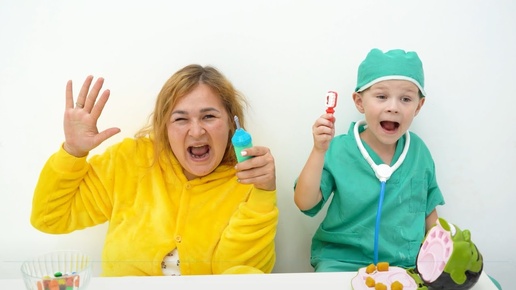 90 Ребенок играет в дантиста лечит маме больные зубы