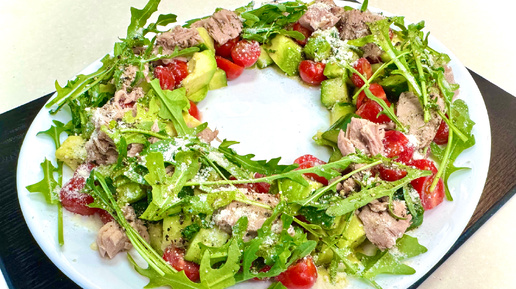 Салат «Кольцо» с тунцом, авокадо и овощами.